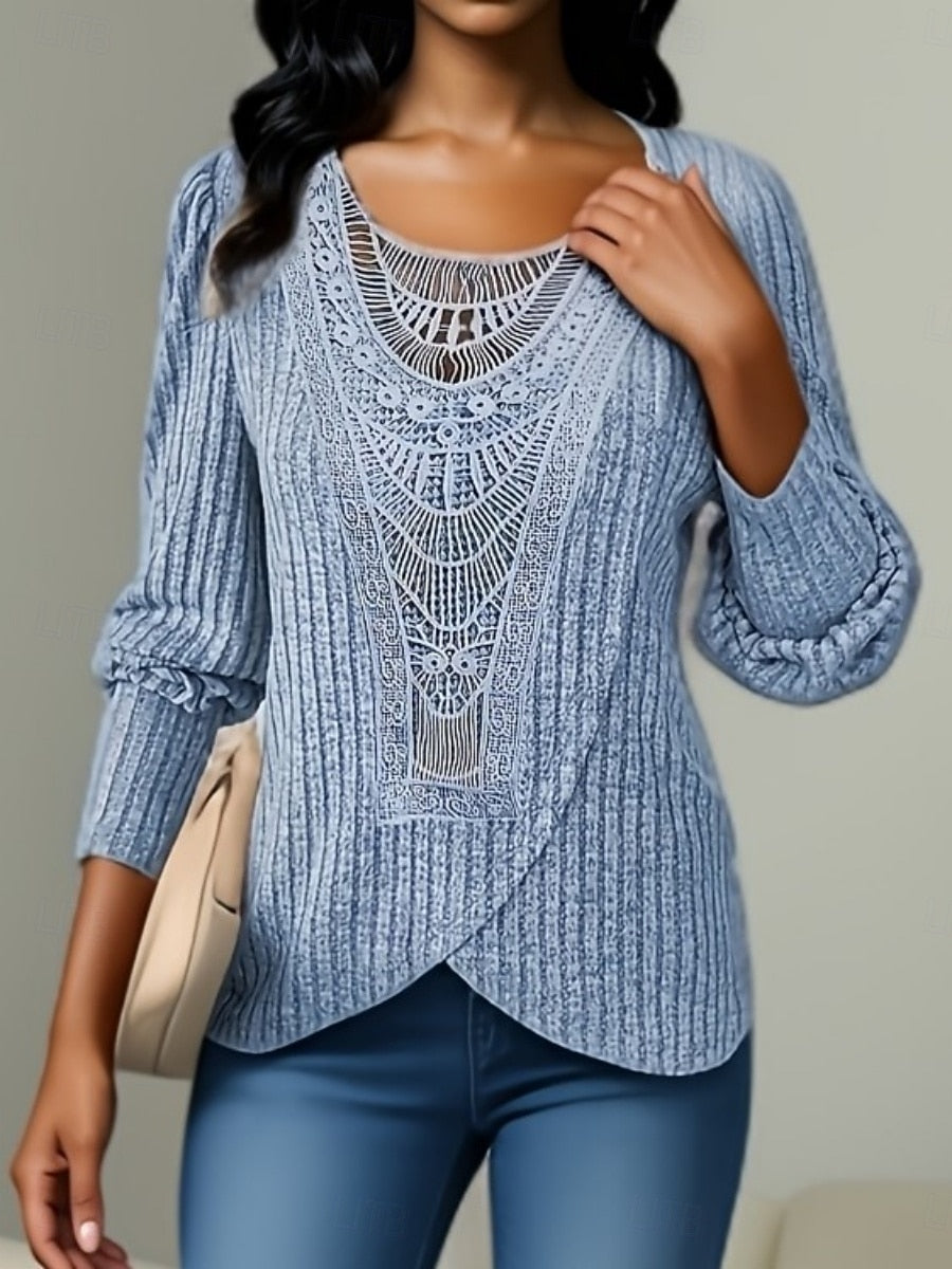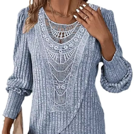 Elevate your everyday style with the LaceEdge Tee — a ribbed, long-sleeve top with elegant cut-out details and delicate contrast lace trim. Designed with a flattering crew neck and a soft, comfortable fit, this versatile piece transitions effortlessly from casual days to evening outings, making it a perfect choice for fall and winter.